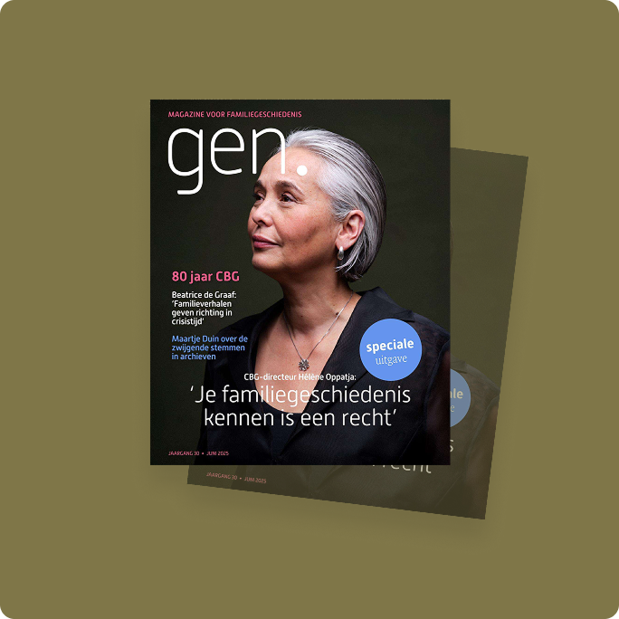 Gen.Magazine is een uitgave van CBG|Centrum voor familiegeschiedenis. Het verschijnt 4 keer per jaar op papier en digitaal (oplage 14.000). Losse nummers zijn te bestellen voor € 19,20 via onze website.